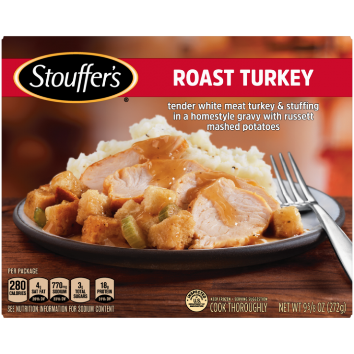 Stouffers Bowl-Fulls TV Spot Thank-Full. Stouffers Lasagna TV Spot Made For You To Love. Once again Stouffers Homestyle Dinners took first place this time with its Roast Turkey Breast and Dressing 319 which tied with Marie Callenders Complete Dinner Turkey Breast with Gravy and Stuffing 331.